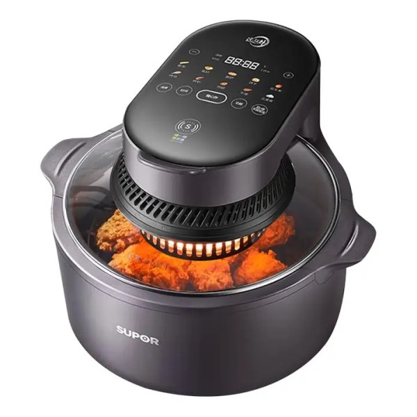 采用加厚高硼硅玻璃全景视窗,抗裂防爆,烹饪全程可视,随时调整火候不翻车;1350W大功率搭配不锈钢发热管,传热快、抗氧化,360°立体加热口感在线。机身做工扎实,材质安全无异味,空炸小食、焖煮家常菜、煎烤牛排全都能拿捏,实用性拉满不闲置。
