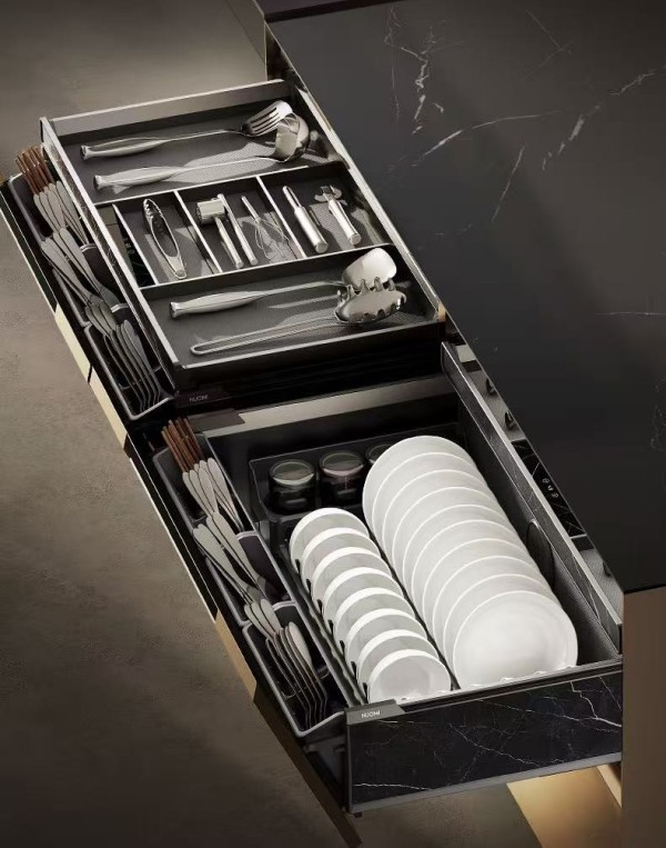 诺米橱柜功能收纳五金,覆盖地柜、转角、吊柜、高柜全场景收纳系统,精准利用每一寸柜体空间,彻底打破传统厨房拥挤、杂乱、死角浪费的局限,让收纳更高效、空间利用率翻倍。