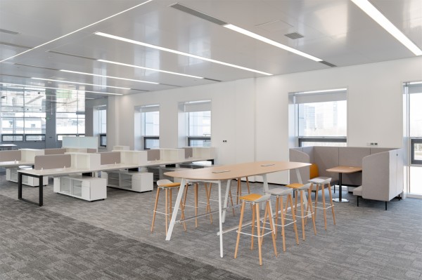 工作环境更新也是文化的呈现。休闲轻松的公共吧桌、略带降噪的卡座和茶水吧台传递热情的氛围,为合作与交流提供更多机会。