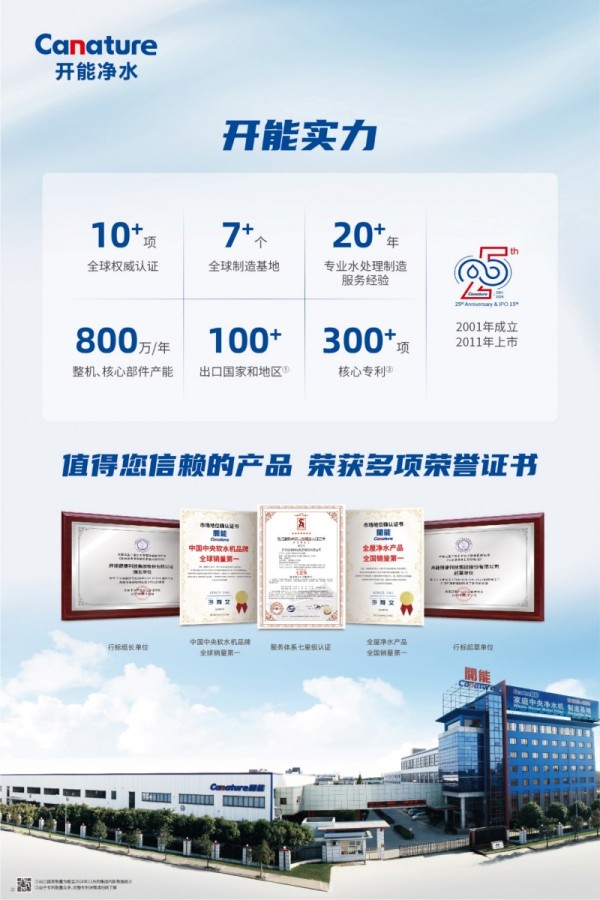 据悉,开能净水(股票代码:300272)深耕行业二十五载,已累计获得专利近300项①,参与制定国内30多个团体标准③,旗下产品先后获得美国IDEA奖、德国iF设计奖、红点设计奖等国际权威奖项。此次获奖产品不仅在功能上实现全面升级,更将智能化、健康化理念深度融入设计,通过简洁直观的操作界面与精准控制,让高品质饮水体验触手可及,精准契合当前高端家电“健康化、智能化、集成化”的发展趋势。